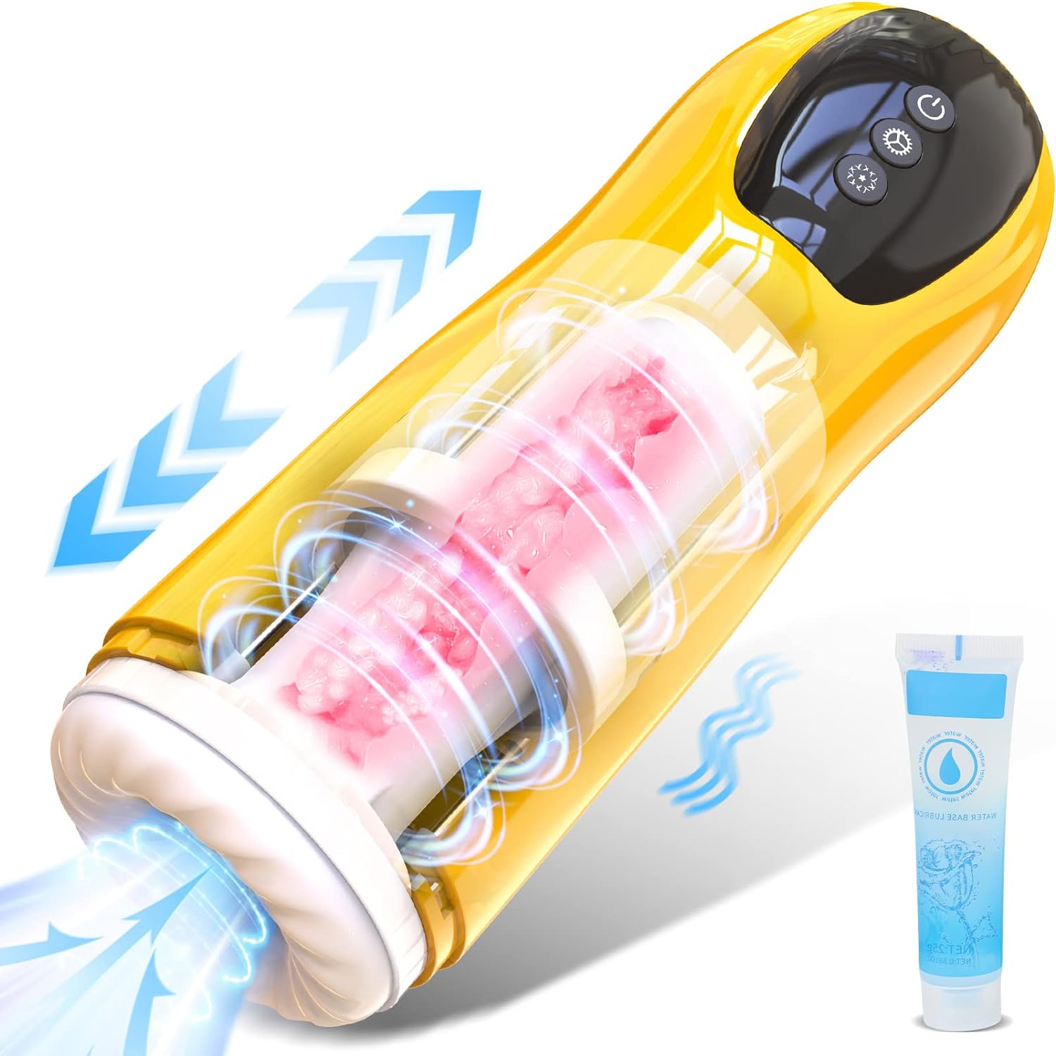 - Apparence Attrayante et Taille Raisonnable - Toute la surface du corps de ce masturbateur électrique homme est d'apparence jaune attrayante et luxueuse, vous apportant un nouvel impact visuel. De plus, ce sex toys pour homme est raisonnablement conçu, la longueur totale de la masturbateur électrique est de 9,6 pouces, la couverture intérieure en silicone mesure 5,7 pouces de long et le diamètre de la couverture en silicone est de 1,3 pouces.