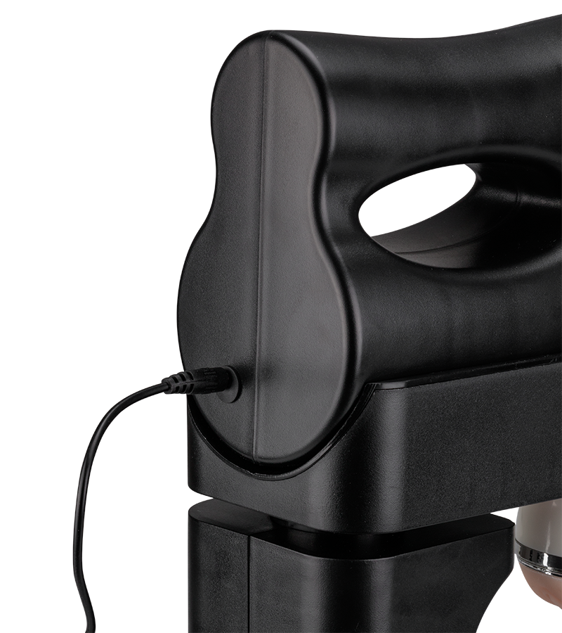 Le socle de l’appareil mesure 39,0 cm de long pour 27,0 cm de large. L’appareil mesure 40,0 cm de hauteur. L’insert vagin est profond de 13,0 cm et offre un diamètre d’insertion de 4,0 cm. L’appareil fonctionne uniquement sur secteur.