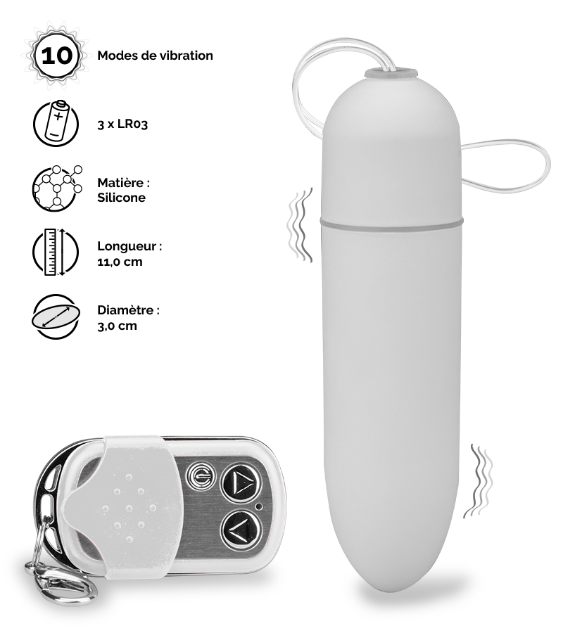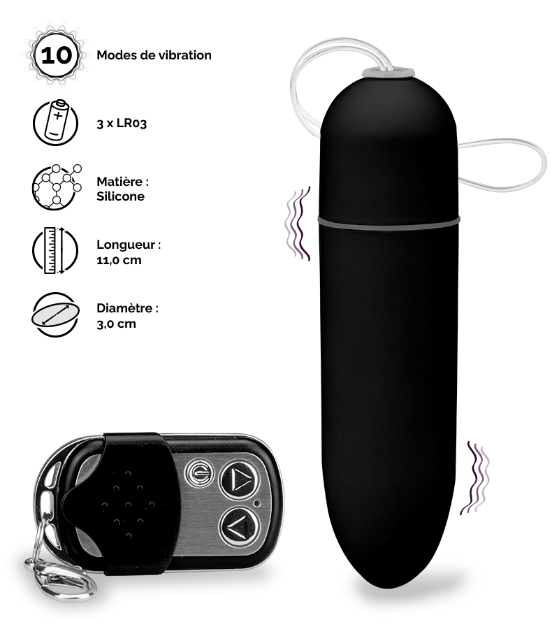Grâce à son format grande taille, cet œuf vous fera bénéficier de massages puissants et profonds. Ses 10 modes de vibrations contrôlables par télécommande sans fil vous permettront de prendre en main votre plaisir ou de laisser le contrôle à votre partenaire pour encore plus de fun.